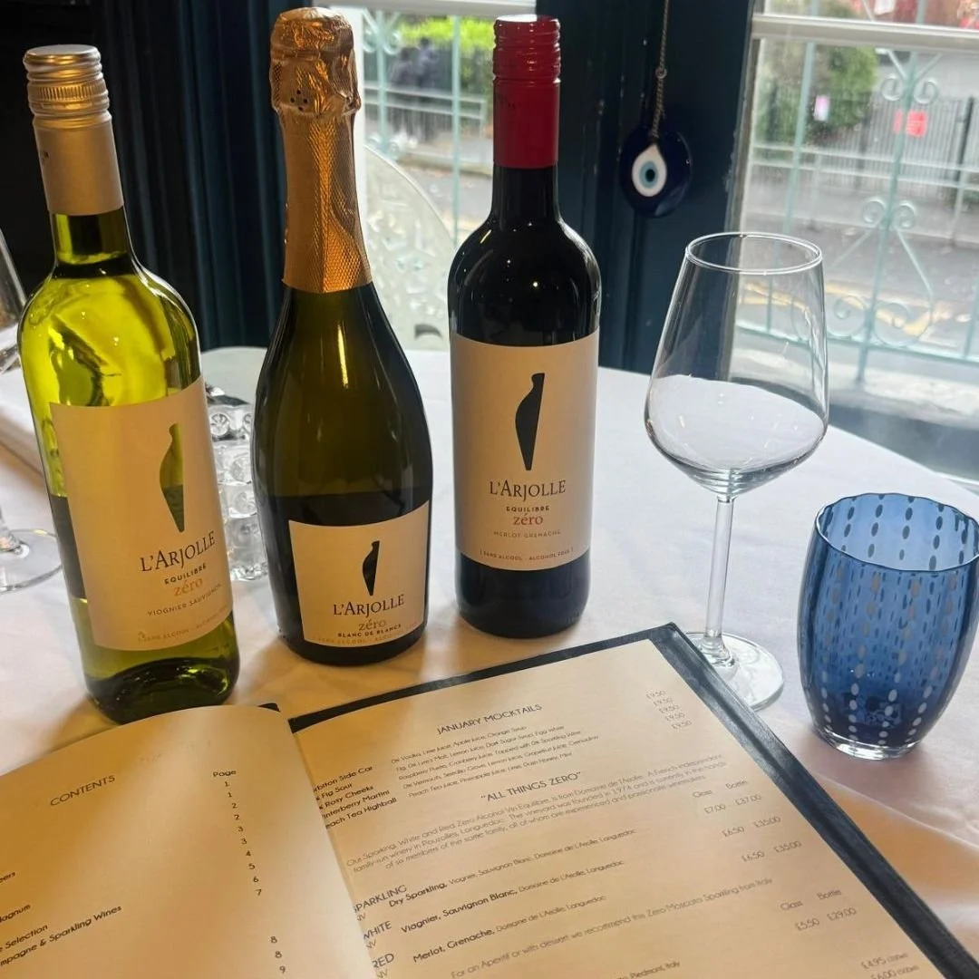 Sarah and Adam have put together a fab list of low and no-alcohol offerings for this month and beyond. Fancy a zero-alcohol wine? We now have a beautiful white, red and sparkling -all three have been highly rated by our team! There are some wonderful alcohol-free cocktails to sample, and for those wanting to still partake in our tasting menus, an alcohol-free pairing will be available.